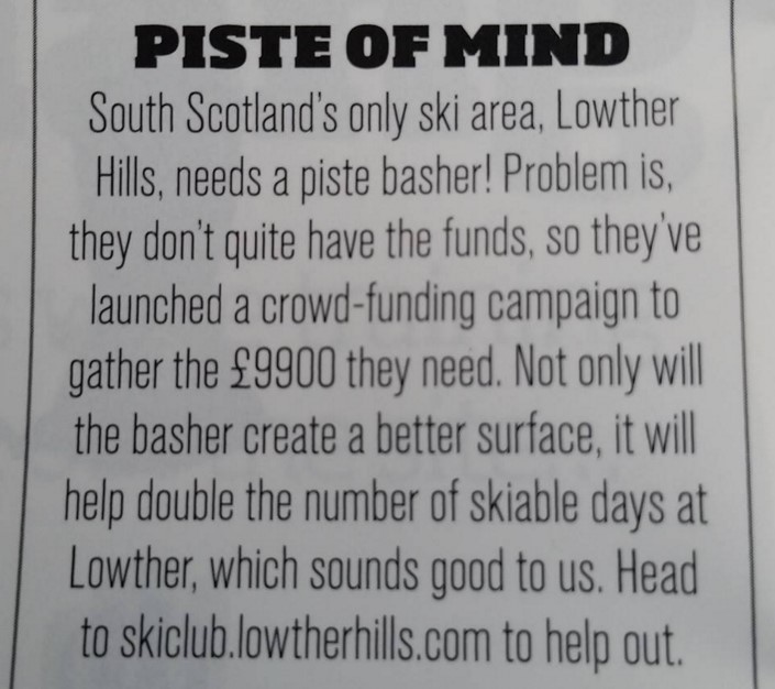 Yes, Scotland's sixth ski area is operational! - Lowther Hills was back on the headlines. This one is from InTheSnow, the UK's most read snowsports magazine.