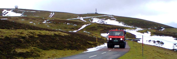 Thursday 18th December. Chris, Neil, Nathan, Matt, and Anjo loaded Tom Moffat's trailer with the engine shed's panels while James McKelvie provided transport for the crew. Unfortunately, NATS's snowcat had broken down below Lowther Hill, blocking access to the site. The transportation of the engine shed had to be postponed until Saturday 20th.